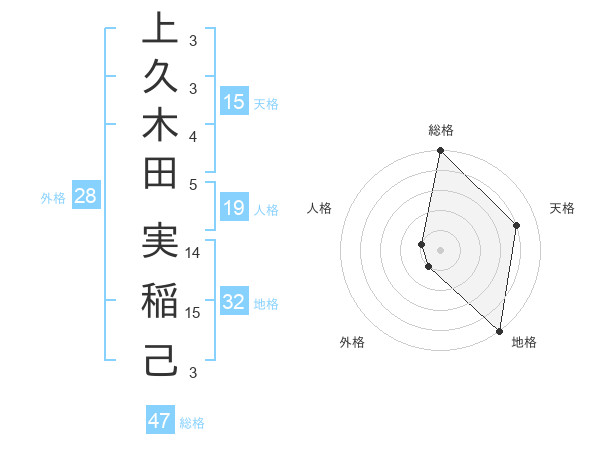 上久木田 実稲己さんを姓名の画数から五運を鑑定