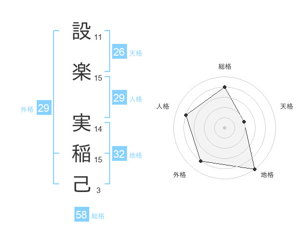 設楽 実稲己さんを姓名の画数から五運を鑑定