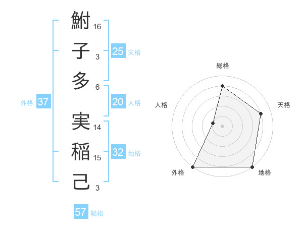 鮒子多 実稲己さんを姓名の画数から五運を鑑定