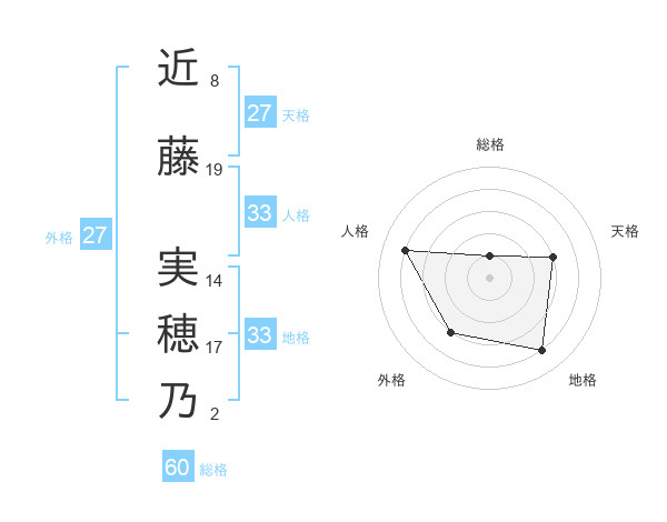 近藤 実穂乃さんを姓名の画数から五運を鑑定