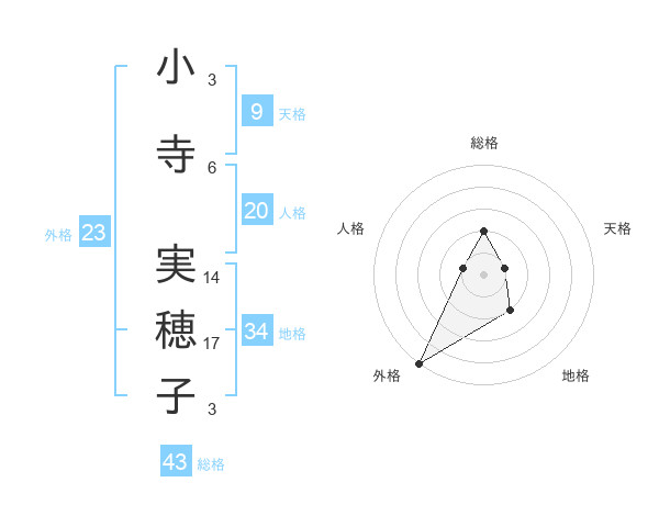 小寺 実穂子さんの総格は43画の2点!