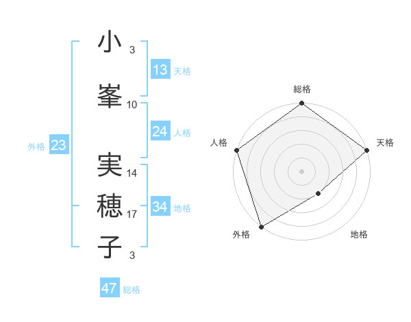 小峯 実穂子さんを姓名の画数から五運を鑑定
