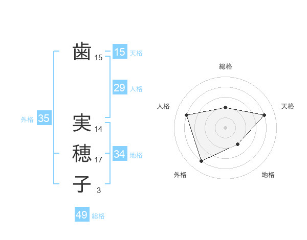 歯 実穂子さんの外格は35画の4点!
