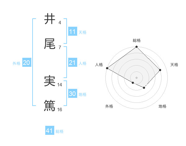 井尾 実篤さんの人格は21画の5点!