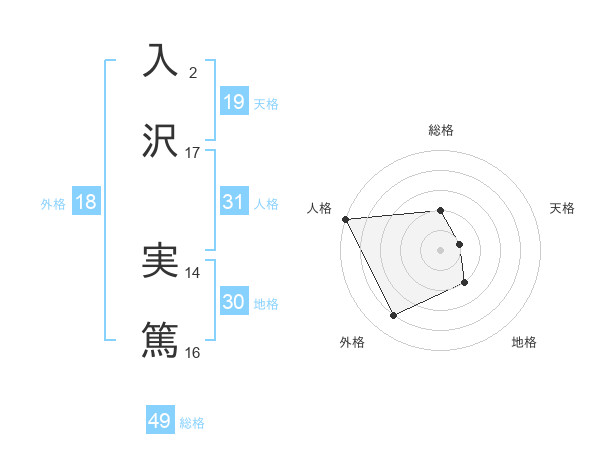 入沢 実篤さんの天格は19画の1点!