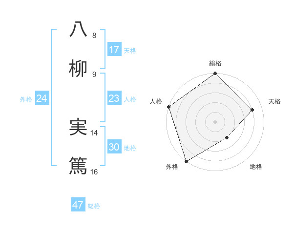 八柳 実篤さんを姓名の画数から五運を鑑定