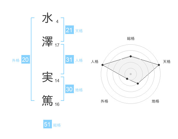 水澤 実篤さんを姓名の画数から五運を鑑定