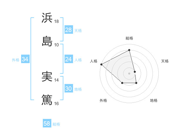 浜島 実篤さんの総格は58画の4点!
