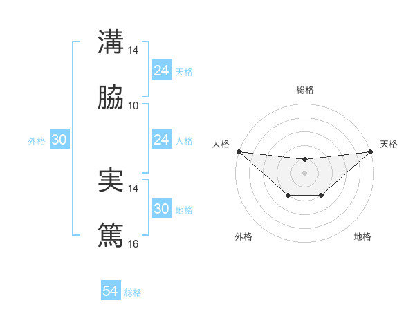 溝脇 実篤さんの総格は54画の1点!
