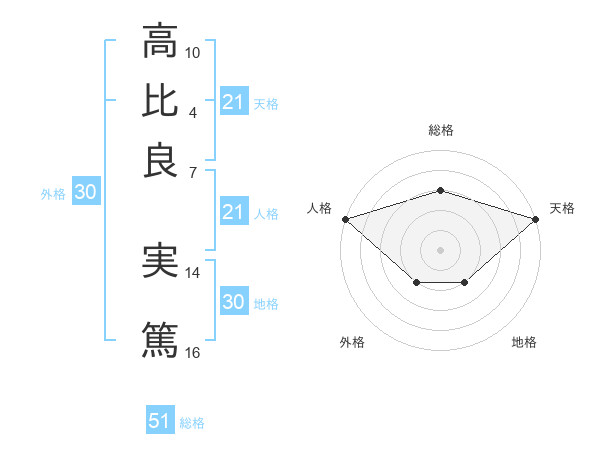 高比良 実篤さんを姓名の画数から五運を鑑定