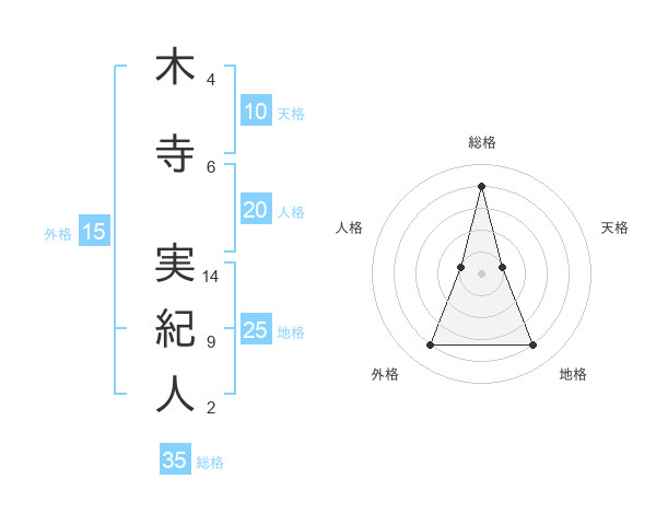 木寺 実紀人さんの総格は35画の4点!