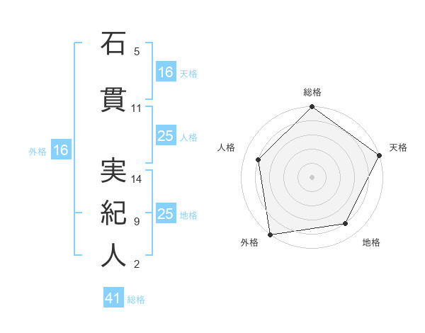 石貫 実紀人さんの総格は41画の5点!