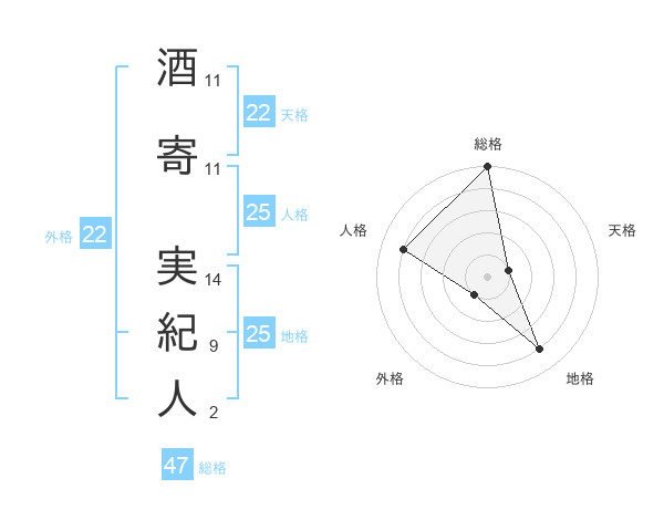 酒寄 実紀人さんを姓名の画数から五運を鑑定
