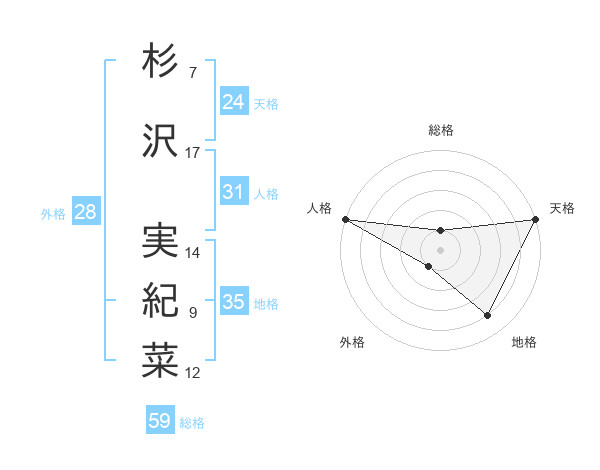 杉沢 実紀菜さんを姓名の画数から五運を鑑定