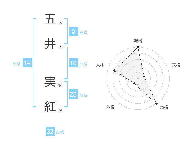 五井 実紅さんの総格は32画の5点!