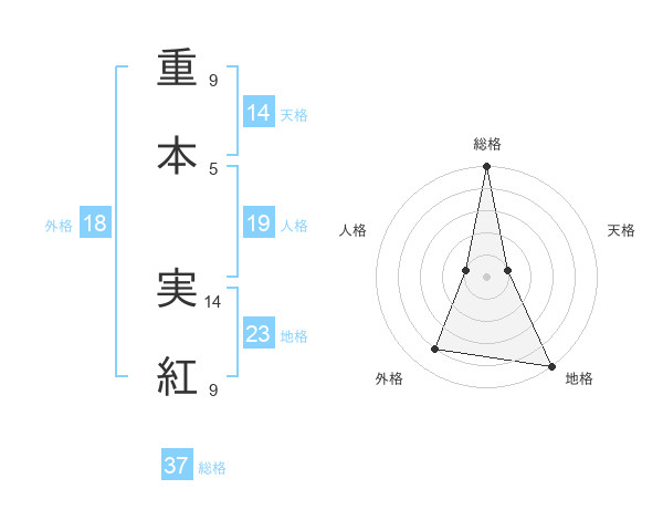 重本 実紅さんの総格は37画の5点!
