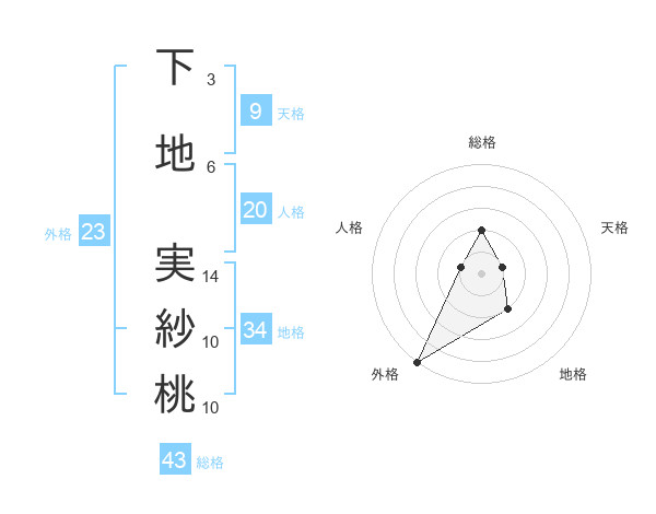 下地 実紗桃さんを姓名の画数から五運を鑑定