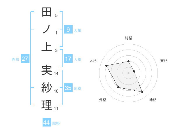 田ノ上 実紗理さんを姓名の画数から五運を鑑定
