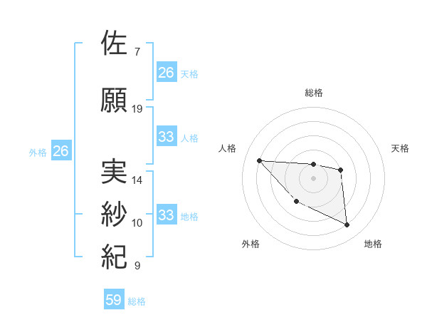 佐願 実紗紀さんを姓名の画数から五運を鑑定