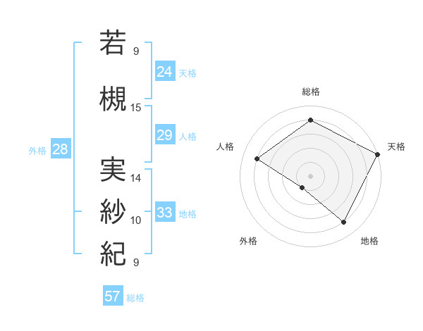 若槻 実紗紀さんを姓名の画数から五運を鑑定