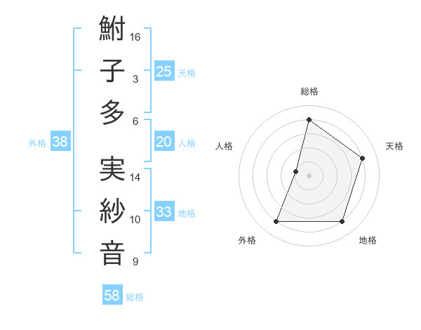 鮒子多 実紗音さんの総格は58画の4点