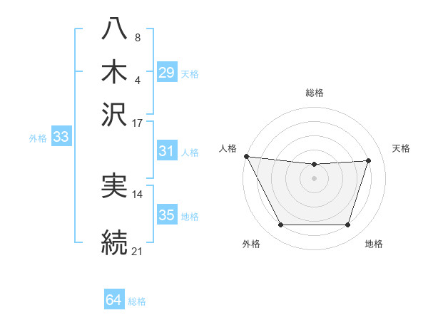 八木沢 実続さんの総格は64画の1点!