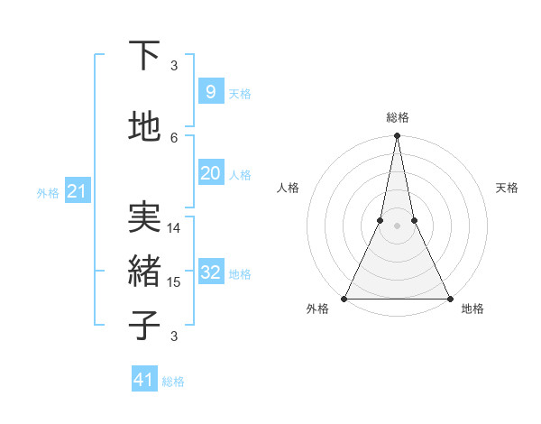 下地 実緒子さんを姓名の画数から五運を鑑定