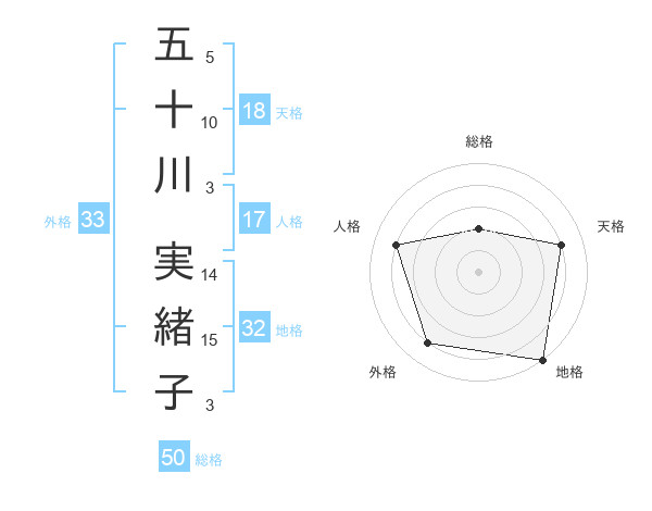 五十川 実緒子さんを姓名の画数から五運を鑑定