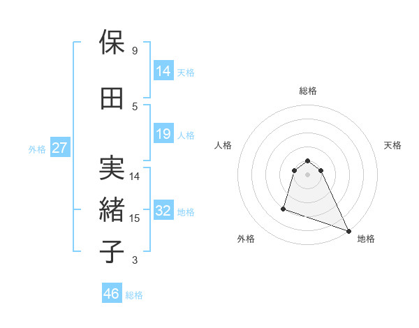 保田 実緒子さんを姓名の画数から五運を鑑定