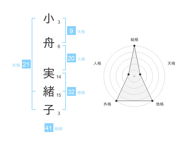小舟 実緒子さんを姓名の画数から五運を鑑定