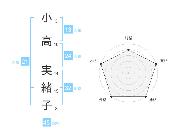 小高 実緒子さんを姓名の画数から五運を鑑定
