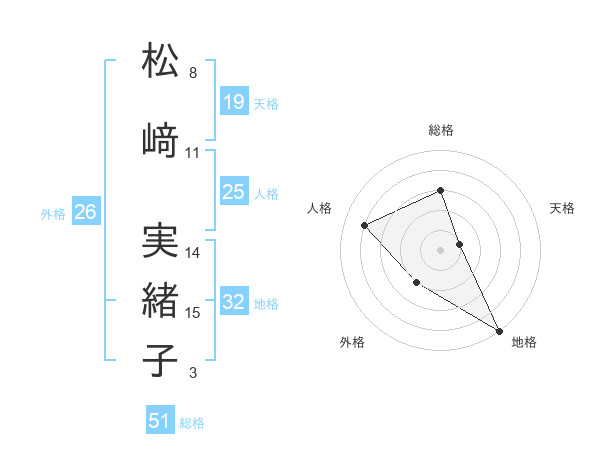 松﨑 実緒子さんの総格は51画の3点!
