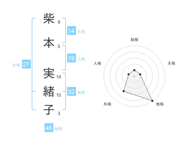 柴本 実緒子さんを姓名の画数から五運を鑑定