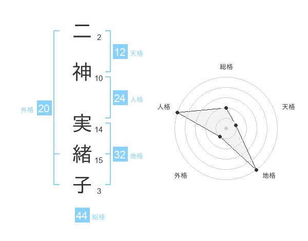 二神 実緒子さんを姓名の画数から五運を鑑定