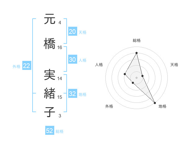 元橋 実緒子さんを姓名の画数から五運を鑑定