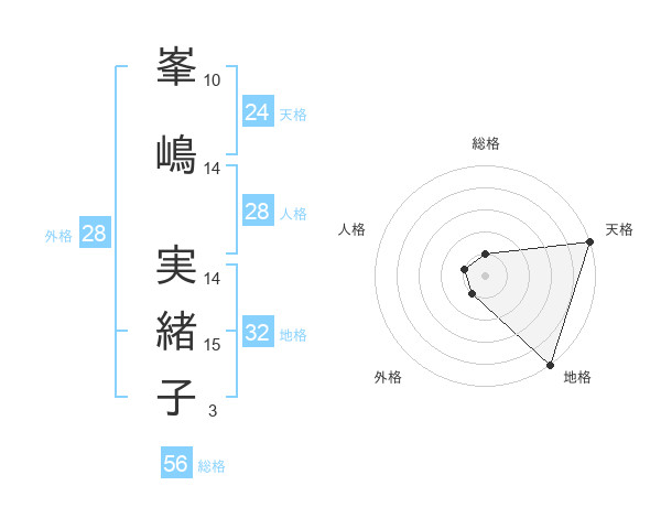 峯嶋 実緒子さんを姓名の画数から五運を鑑定