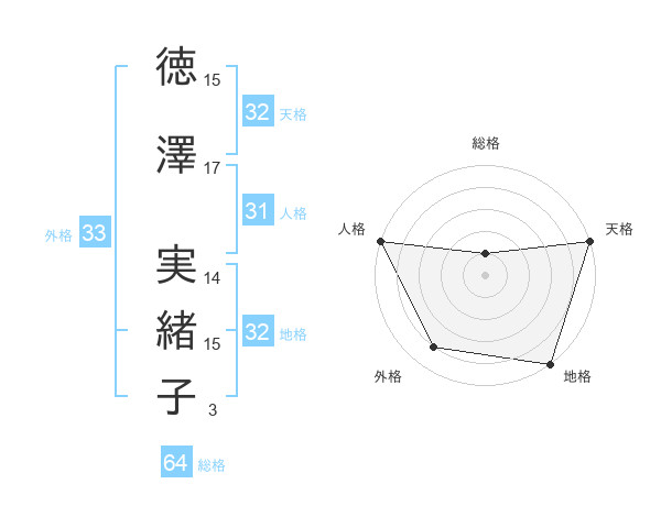 徳澤 実緒子さんの天格は32画の5点!