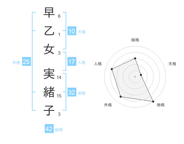 早乙女 実緒子さんの総格は42画の3点!