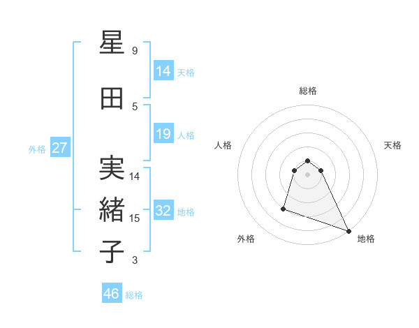 星田 実緒子さんを姓名の画数から五運を鑑定