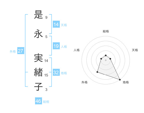 是永 実緒子さんを姓名の画数から五運を鑑定