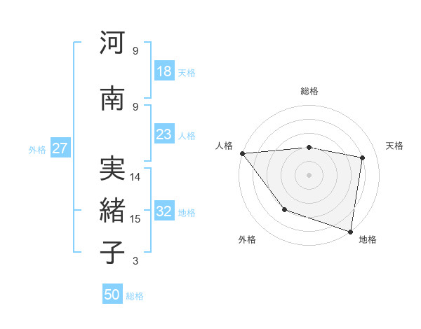 河南 実緒子さんを姓名の画数から五運を鑑定