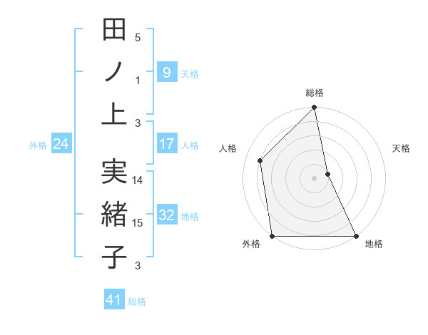 田ノ上 実緒子さんを姓名の画数から五運を鑑定
