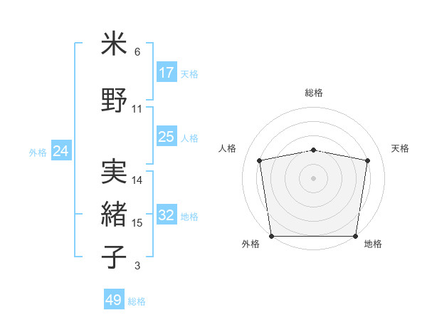 米野 実緒子さんを姓名の画数から五運を鑑定