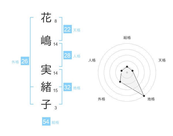花嶋 実緒子さんを姓名の画数から五運を鑑定