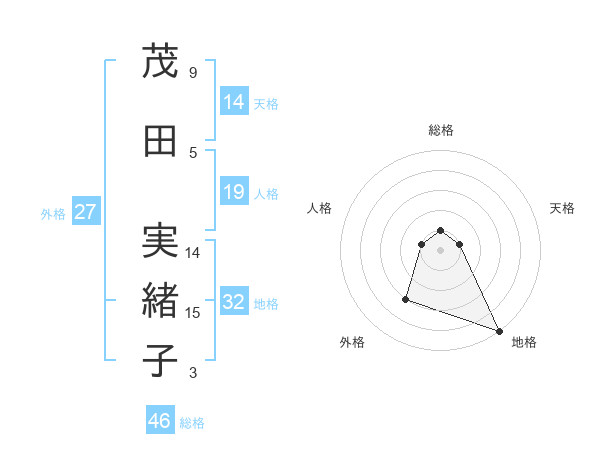 茂田 実緒子さんの天格は14画の1点!