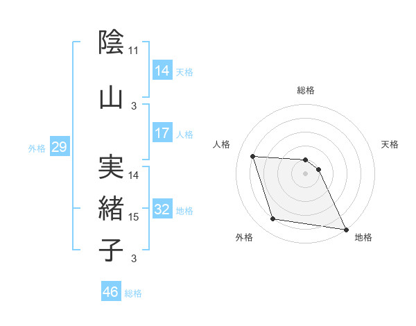 陰山 実緒子さんの地格は32画の5点!