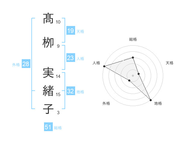髙栁 実緒子さんの総格は51画の3点!
