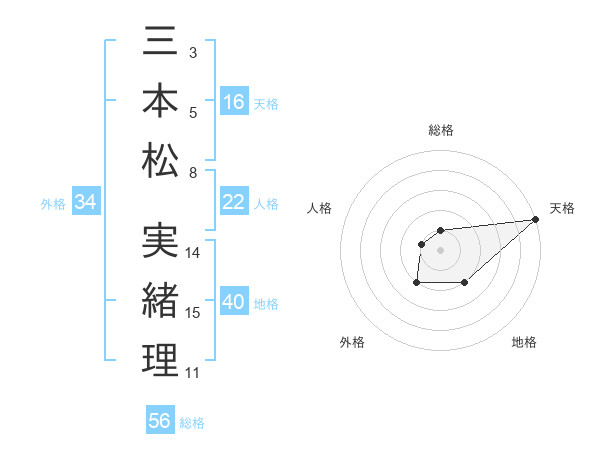 三本松 実緒理さんを姓名の画数から五運を鑑定