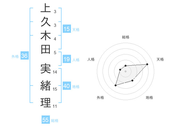 上久木田 実緒理さんを姓名の画数から五運を鑑定