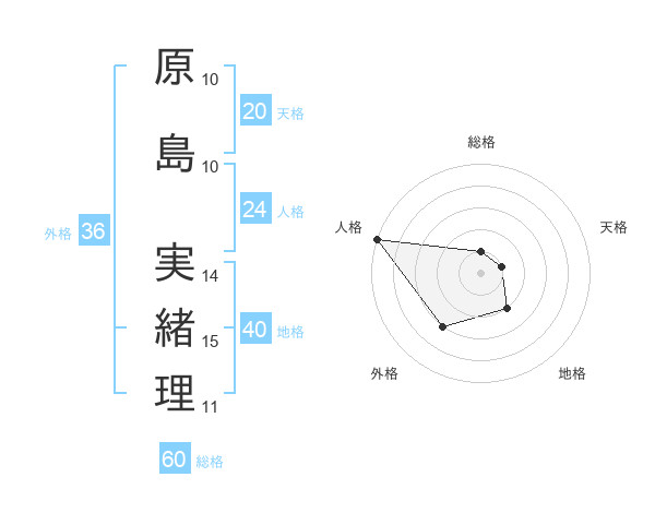原島 実緒理さんを姓名の画数から五運を鑑定